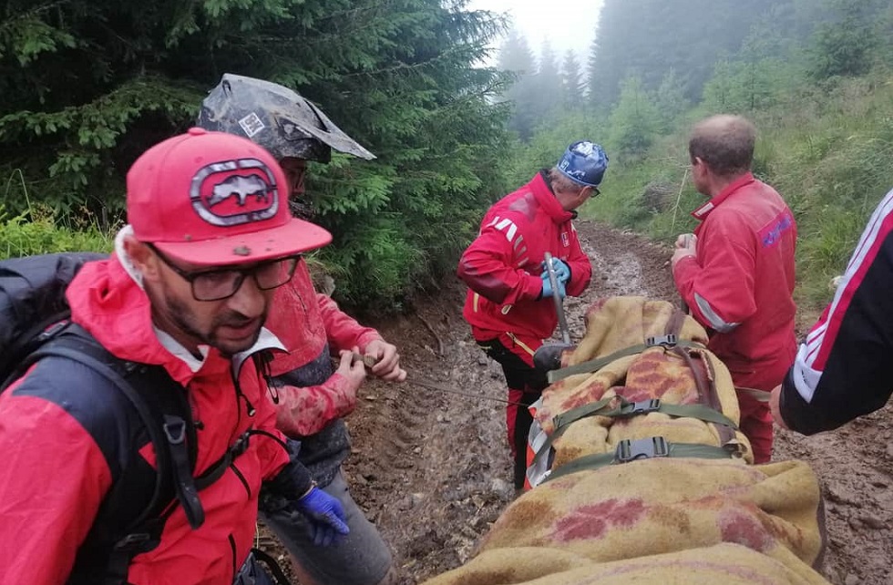 Turist cu multiple traumatisme, coborât de pe munte de salvamontiști