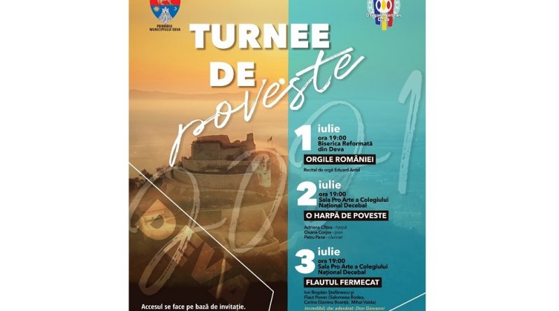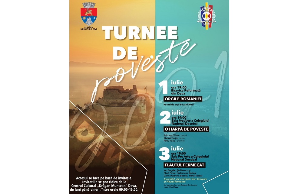 Primăria Municipiului Deva și Centrul Cultural „Drăgan Muntean” Deva vă invită în perioada 1-3 iulie 2021, la trei concerte extraordinare, parte a unor „Turnee de poveste”.