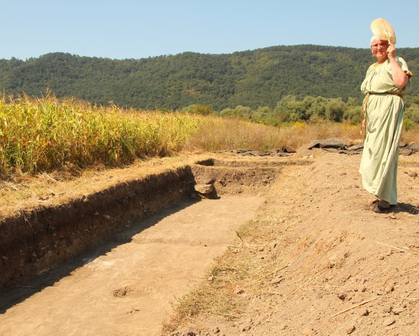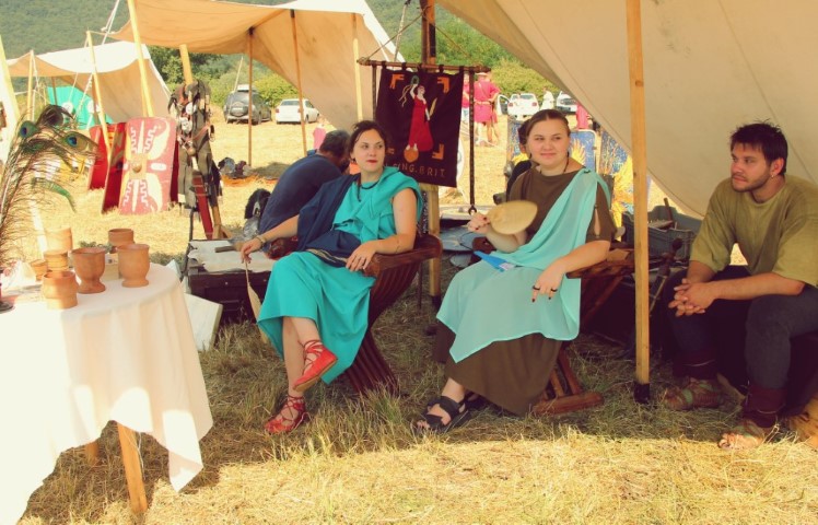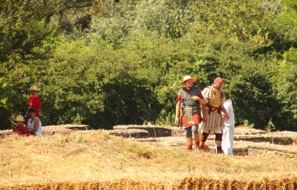 Sunt copiii lui Marius Barbu, reenactor TDA şi arheolog la Muzeul Civilizaţiei Dacice şi Romane Deva. Căpetenia dacă este din Veţel, aşa că dragostea lui pentru acest sit a început din copilărie. Face parte din colectivul de cercetare şi este unul dintre cei care a asigurat ghidajul la festival. Conduce un grup de romani şi câteva dăciţe la ruinele de lângă Amfiteatru: „Micia are trei terme, fiecare cu circuit întreg, complet – vestibulum, frigidarium, tepidarium, caldarium, cu bazine, cu tot ce trebuie. Probabil că două dintre terme sunt ale trupelor din castru – pentru că în castru avem trei trupe auxiliare. Trupa de comageni are inscripţii în una din terme, deci probabil că este a lor, a doua este probabil a trupei de hispanici – Ala I Hispanorum Campagonum.- şi a treia credem că este pentru civili. Se poate ca a treia trupă să aibă terme în cealaltă parte a castrului, pentru că maurii stăteau înspre sud şi nu cred că veneau până aici la baie. Este supoziţia mea”, povesteşte Marius Barbu.