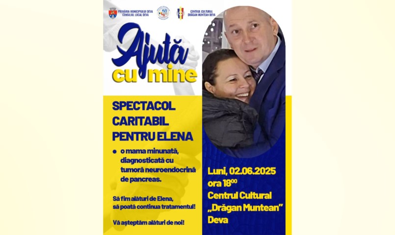 Primăria Municipiului Deva și Centrul Cultural „Drăgan Muntean” vă invită luni, 2 iunie 2025, de la ora 18:00, în Sala Mare a Centrului Cultural, la un spectacol caritabil dedicat unei cauze pline de emoție și speranță: sprijinirea Elenei, o mamă curajoasă diagnosticată cu o tumoră neuroendocrină pancreatică.