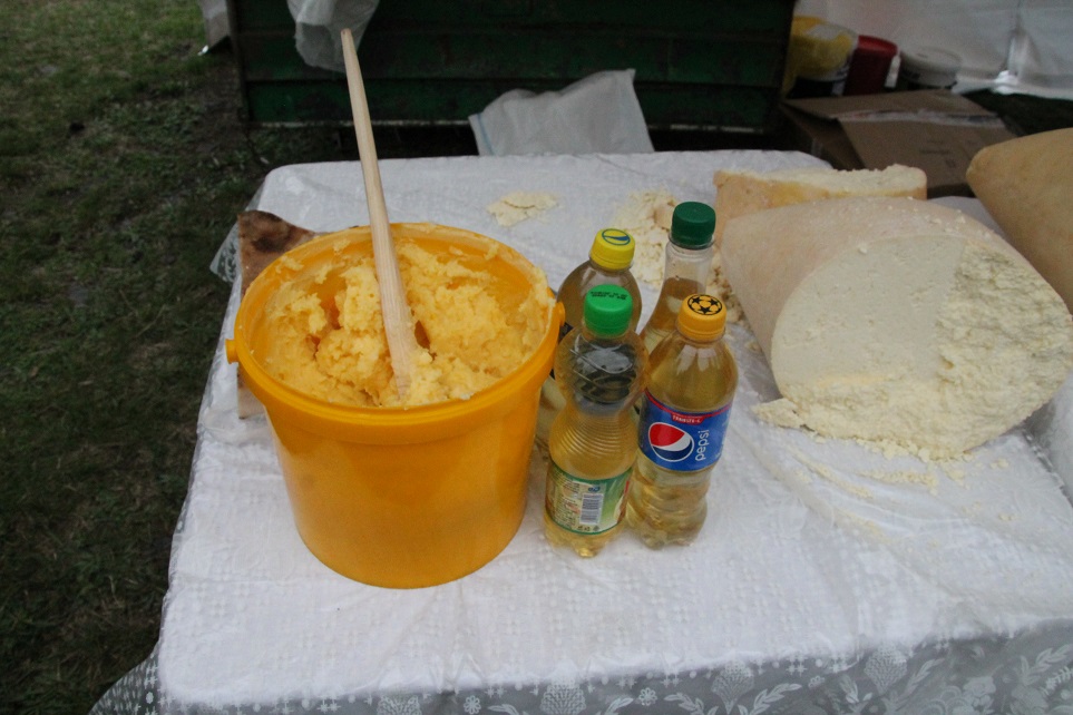 Tot la standuri, pe lângă o mulţime de potcoave, clopote, talăngi, bice, hamuri şi alte produse utile în gospodăria ţărănească, localnicii din Şureanu au adus produsele realizate în gospodării, din lapte de oaie.