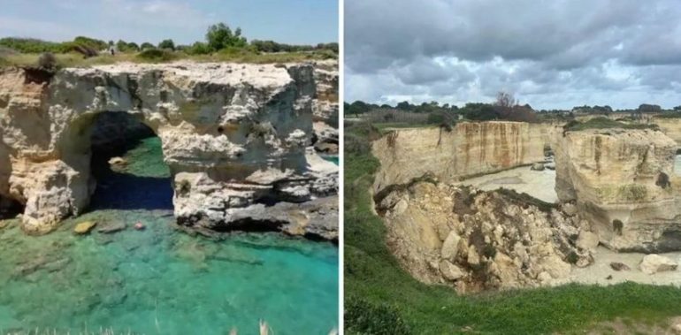 Cisternino a spus că zilele în şir de ploi torenţiale, vânt puternic şi marea agitată au lovit coasta şi, în cele din urmă, au distrus arcul. „