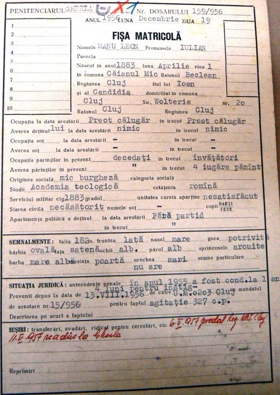 Fișa deținutului Leon Manu, închis în Penitenciarul Gherla 11