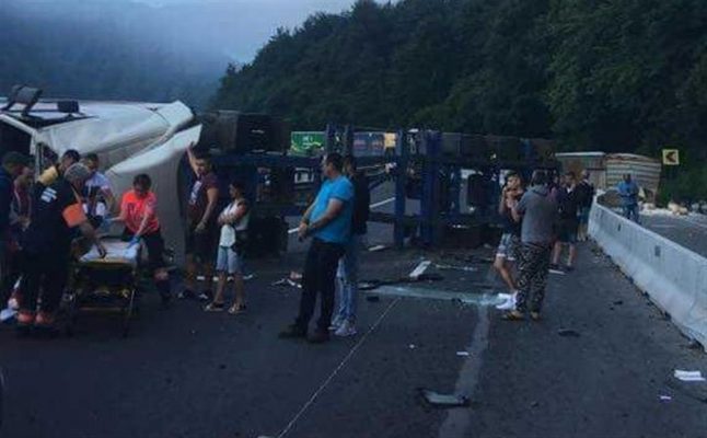 Mai multe echipaje de drumari şi poliţişti se află pe DN & şi încearcă să degajeze carosabilul pentru ca traficul să fie reluat pe un fir.