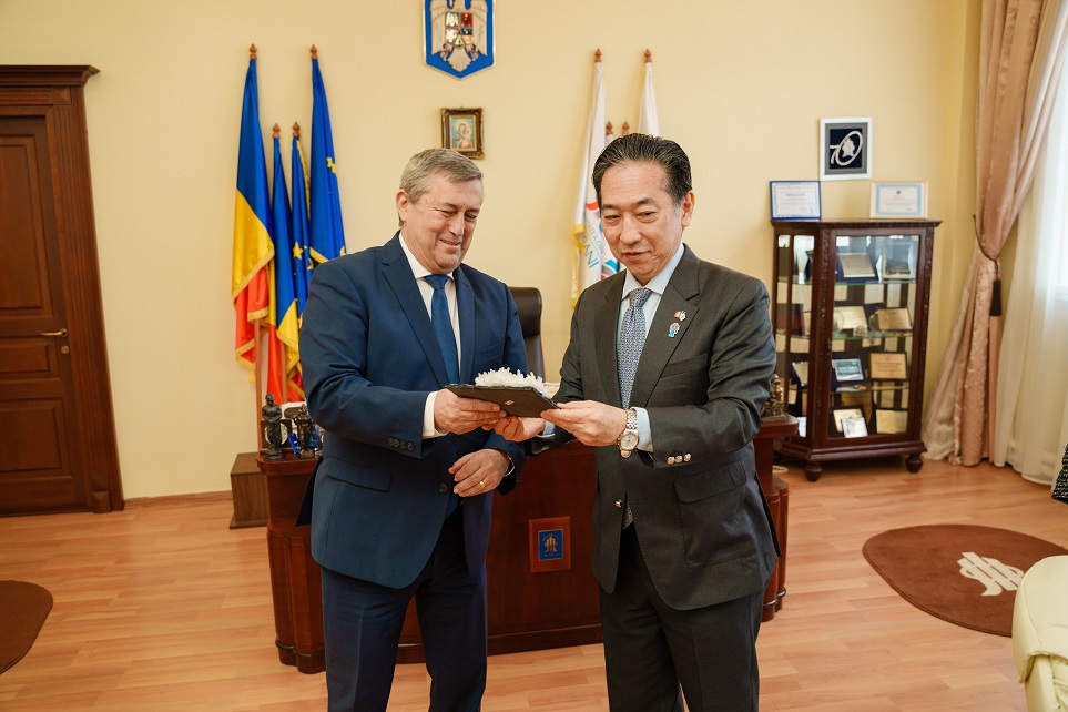 Universitatea din Petroșani a primit astăzi vizita Excelenței Sale KATAE Takashi, Ambasadorul Japoniei în România, într-un eveniment ce subliniază angajamentul instituției pentru dezvoltarea relațiilor internaționale. Delegația Ambasadei Japoniei a fost întâmpinată de rectorul Universității, Prof. Univ. Dr. Ing. Radu Sorin Mihai, care a evidențiat importanța dialogului și a deschiderii spre parteneriate academice globale.
