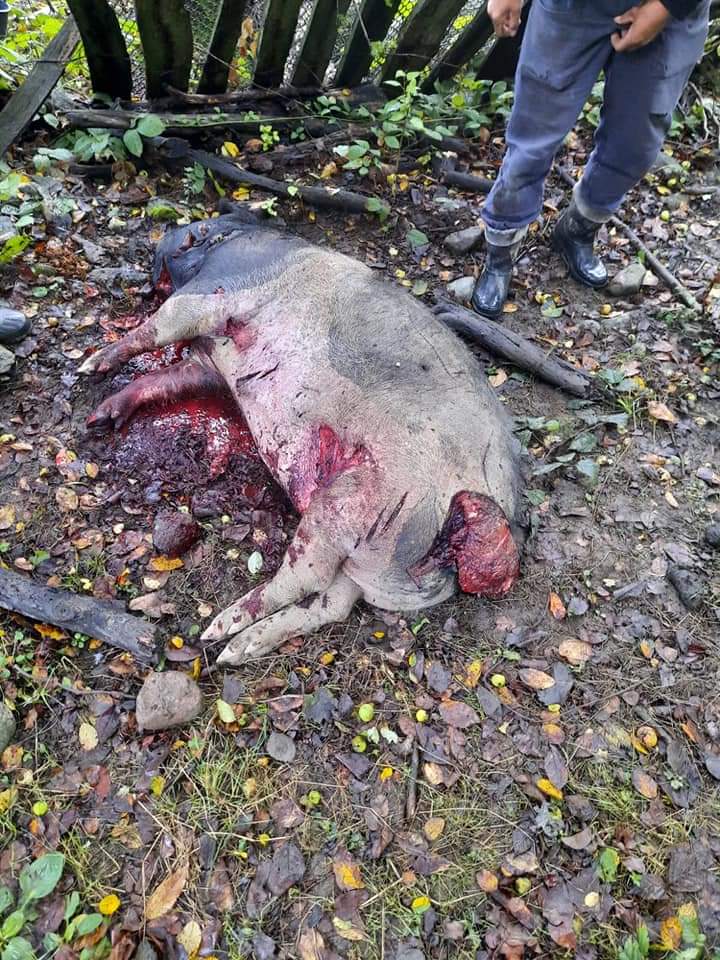 Se pare că ursul a pătruns în gospodăria unui localnic și a omorât un porc.