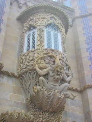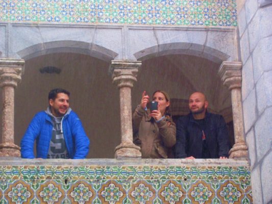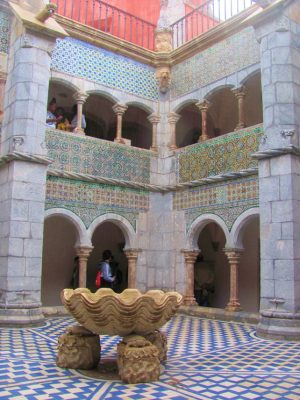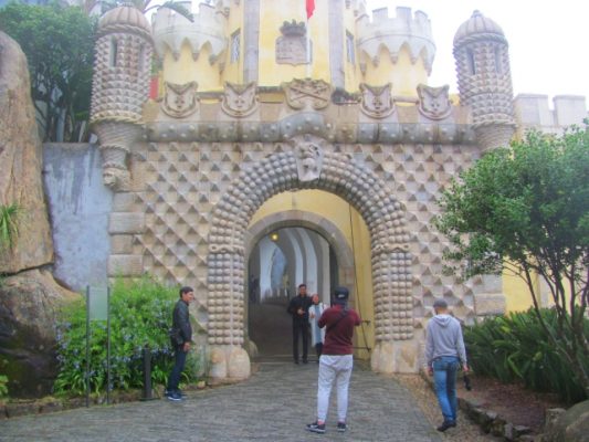 Apoi mașina ne poartă pe serpentine alunecoase, prin păduri stranii, presărate cu bolovani imenși, crescuți parcă de sub pământ, ca niște case ale gnomilor sau căzuți din cer, ca niște rămășițe ale unor asteroizi. Un peisaj de poveste acoperit de cețuri lăptoase, pe care farurile le taie neîncetat. “Dincolo de curba drumului, ar putea să fie o fântână sau un castel, sau ar putea să fie doar și mai mult drum…” Însă la capătul drumului nostru este un castel, un minunat castel, cu un parc pe măsură. Parcul și castelul Pena. Biletul de intrare costă 14 euro pentru o persoană. Povestea spune că, în 1838, Fernando al doilea a cumpărat mănăstirea călugărilor ieronimi “Nossa Senhora da Pena”, care fusese construită pe vârful dealului Sintra (portughezii le spun dealurilor înalte “serra”).