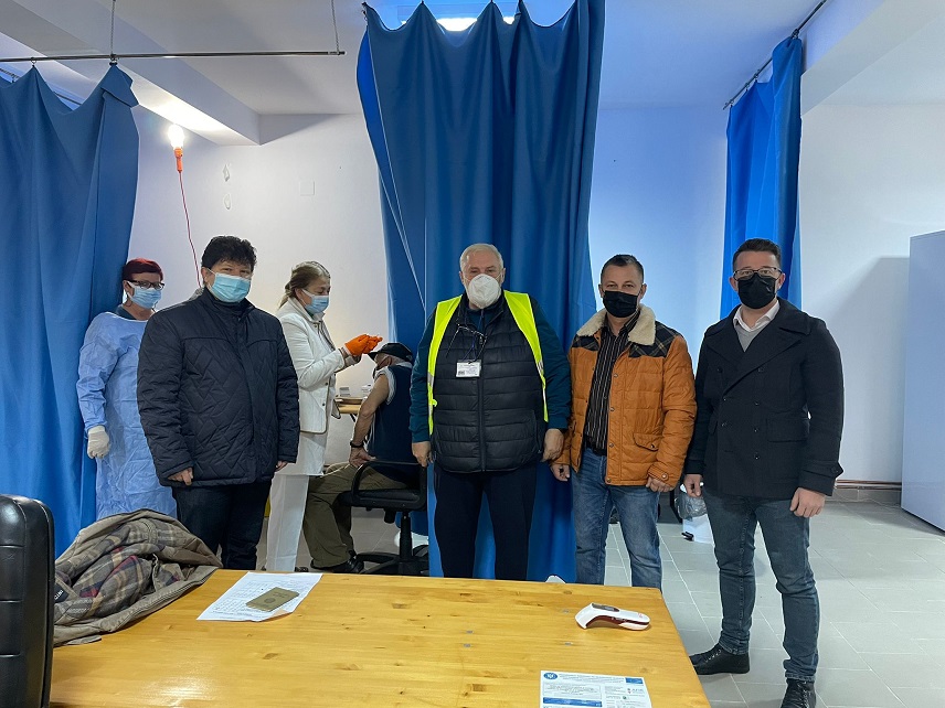 Împreună cu primarul comunei Peștișu Mic, Daniel Dobruțchi, s-au aflat la Centrul de vaccinare subprefectul Lorincz Szell și directorul Cancelariei, Alexandru Dîlv, pentru a sprijini din punct de vedere organizatoric, activitatea echipei medicale.
