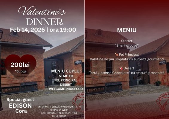 Ziua Îndrăgostiților capătă un plus de rafinament la Hunedoara. Pe 14 februarie 2026, de la ora 19:00, Urban by Werk propune un concept special dedicat cuplurilor care își doresc o seară diferită, construită în jurul gastronomiei, atmosferei și muzicii live.