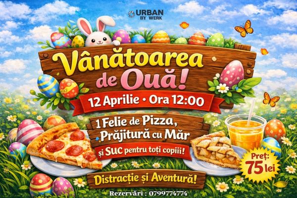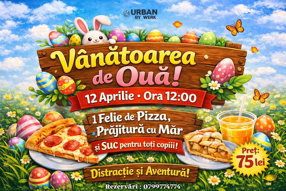 Urban by Werk pregătește un eveniment dedicat celor mici, cu ocazia sărbătorilor de Paște. „Vânătoarea de ouă” va avea loc pe 12 aprilie, de la ora 12:00, într-un cadru special amenajat pentru distracție și activități interactive.