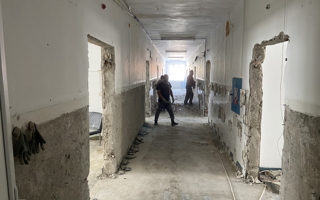 În acest moment se desfășoară lucrări pe mai multe etaje și odată cu finalizarea scării de evacuare în caz de incendiu va putea fi posibilă efectuarea recepției inclusiv a secției de pediatrie care este finalizată.