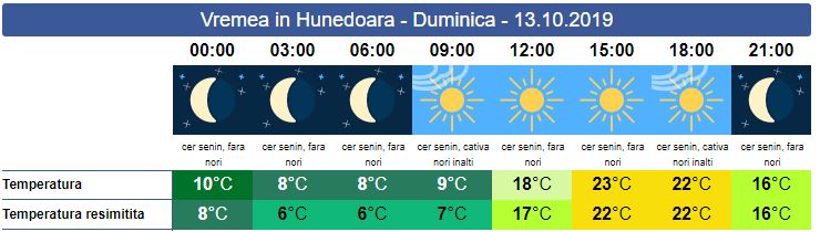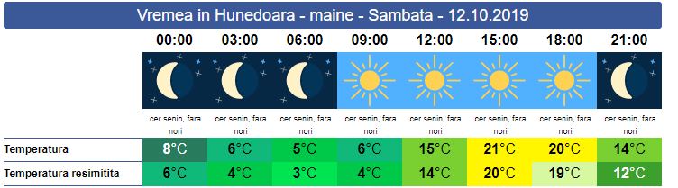 Sâmbătă, temperaturile vor urca simțitor în termometre. Vremea va fi predominant frumoasă, soarele va strălucii generos. Pe timpul nopții temperaturile vor înregistra valori de până la 8 grade Celsius, iar spre dimineață acestea vor coborâ până la 3 grade Celsius. Maximele zilei de sâmbătă se vor încadra între 19 și 21 de grade.