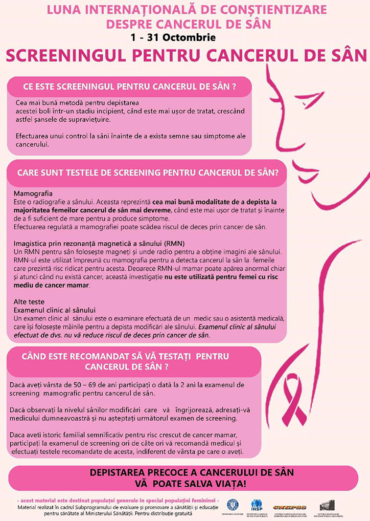 Direcţia de Sănătate Publică a Judeţului Hunedoara va desfăşura acţiuni de conștientizare a populatiei, prin transmiterea prin mediul on-line a materialelor informative, la medicii de familie și spitale, cu privire la incidenta mare a cancerului de sân, și a faptului că este foarte important ca acesta să fie depistat la timp. O altă acțiune de informare va fi o sedință de lucru cu asistentii comunitari si mediatorii sanitari unde aceștia vor fi instruiți și vor primi materiale pentru a fi diseminate la populația vulnerabilă.