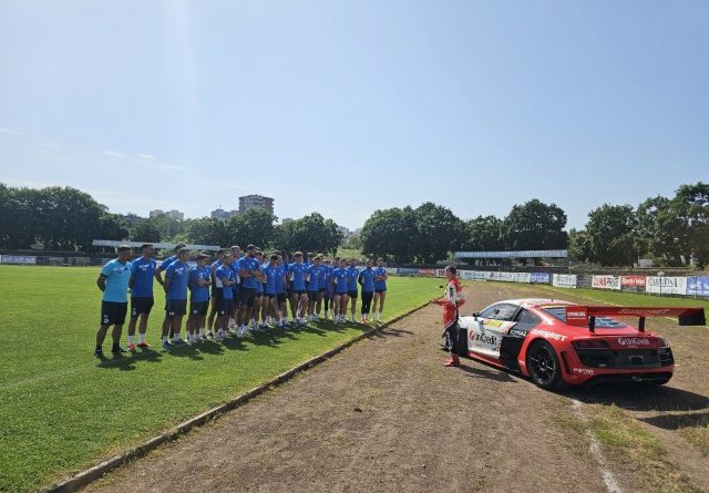 Cu această inedită întrevedere, Mihai Leu, le-a prezentat campionilor României, bolidul, un Audi R8 GT3 LMS de peste 600 de cai putere, cu care va lua startul la Campionatul Naţional de Viteză în Coastă ce se va desfășura în Reșița.