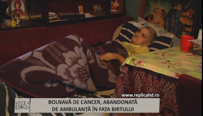 EMISIUNI INFO HDVOCEA STRĂZII Vocea străzii – Bolnavă de cancer, abandonată de ambulanță în fața birtului 12 ianuarie 2018 Petru Meszaros Bolnavă de cancer, abandonată de ambulanță în fața birtului