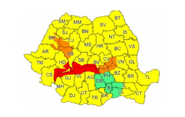 Administraţia Naţională de Meteorologie (ANM) a actualizat informarea meteorologică, valabilitatea fiind prelungită până joi, la ora 9.00.