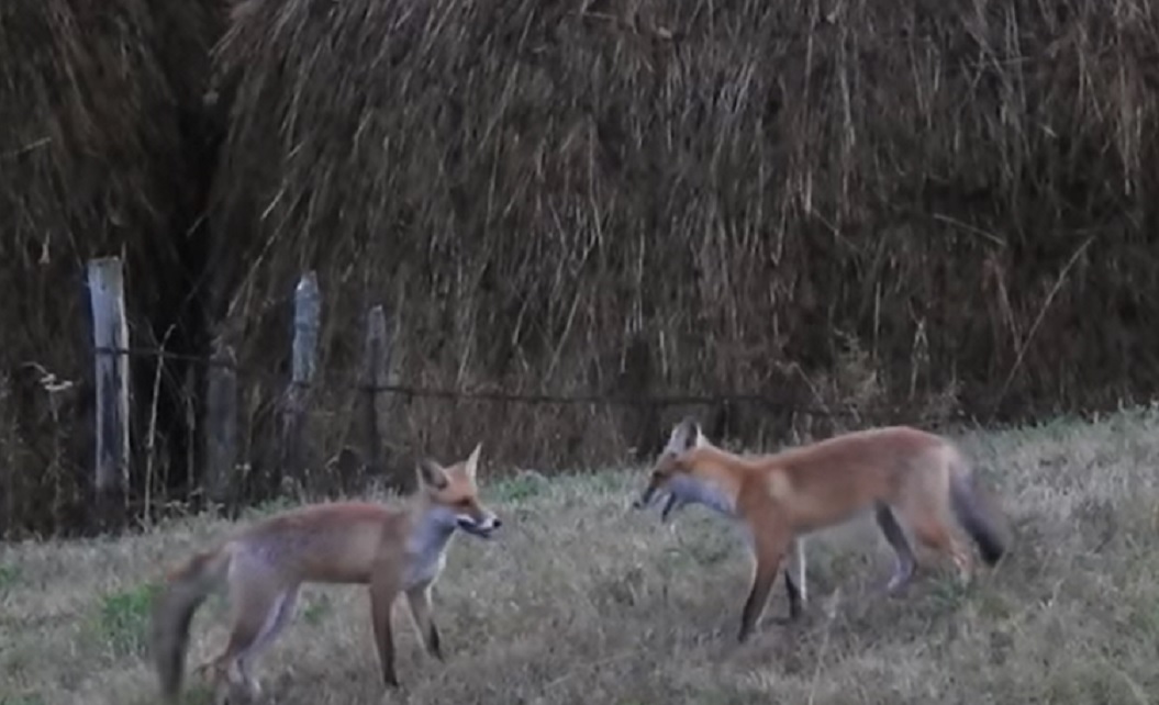 Două vulpi jucăușe au fost filmate într-o gospodărie aflată la poalele munților Parâng. Cele două animale se duelau pentru un măr. Vyo Viorel este cel care a surprins imaginile cu vulpile jucăușe și le-a postat pe rețelele de socializare.