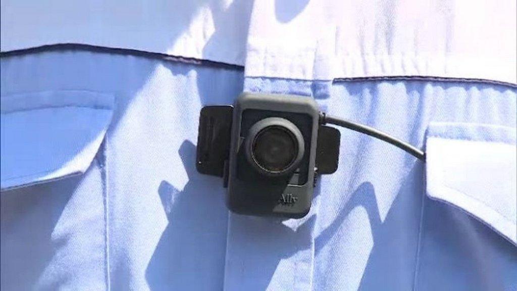 ”Bună ziua, sunt agentul de poliție Caisă. Vă avertizăm că sunteți filmat, dar camera nu e ascunsă. E aici, la mine pe piept!”