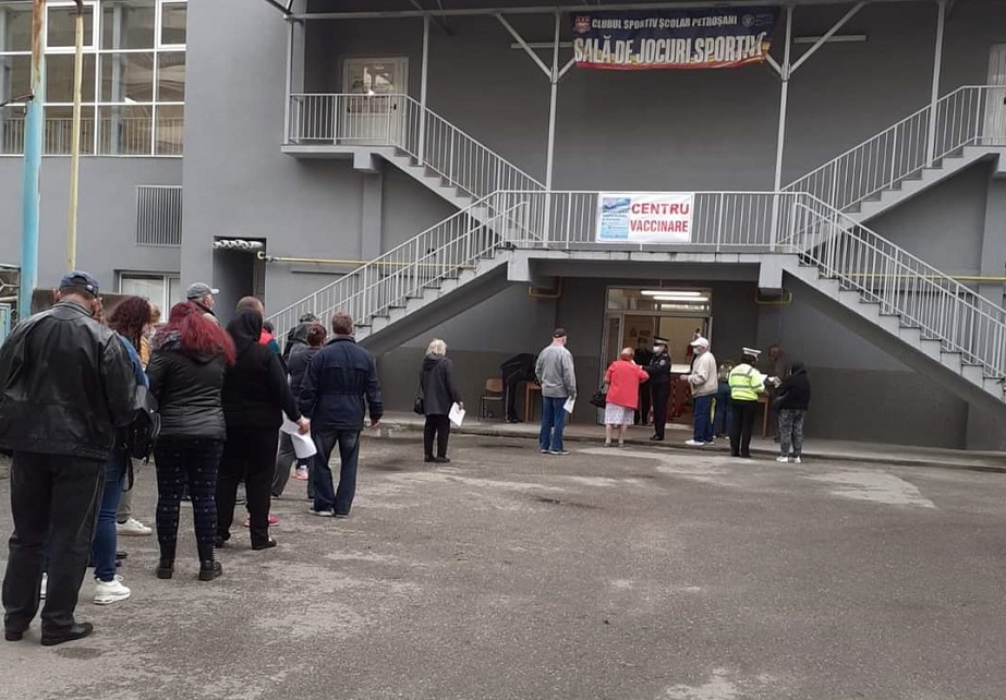 Zeci de oameni s-au așezat încă de dimineață la coadă, la Sala Polivalentă din Petroșani, acolo unde, începând de astăzi, se desfășoară Maratonul vaccinării.
