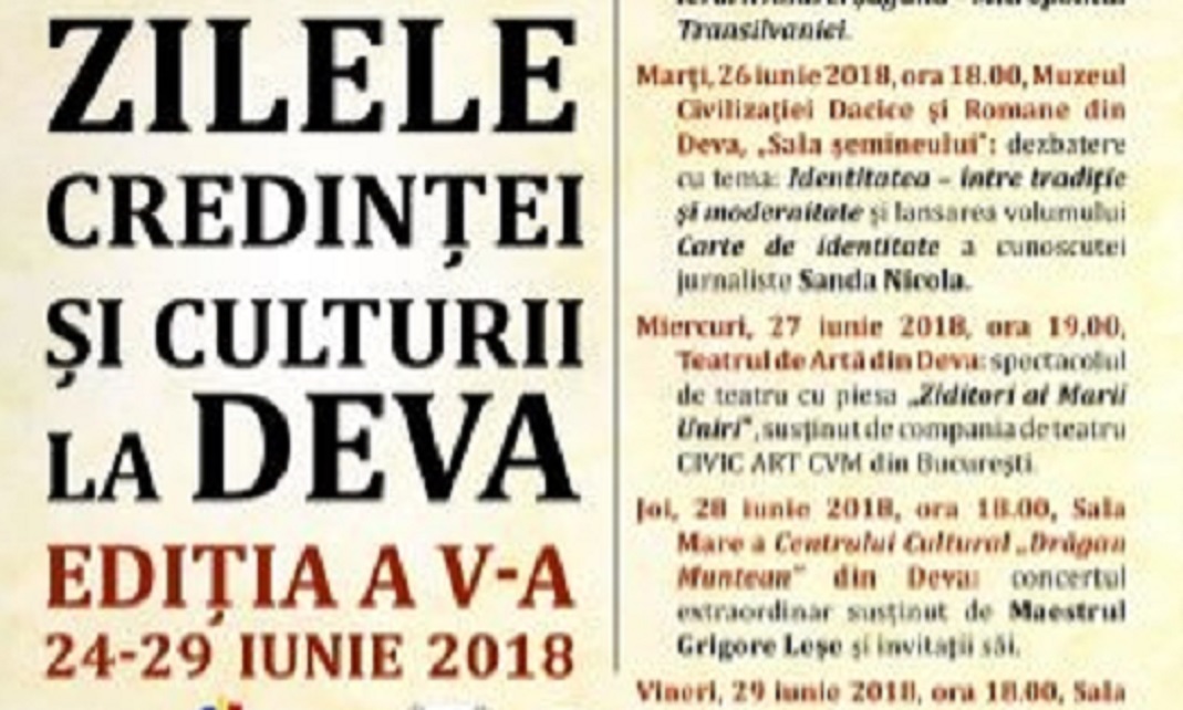 ZILELE CREDINȚEI ȘI CULTURII LA DEVA, ediția a V-a, 25-29 iunie 2018