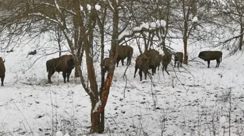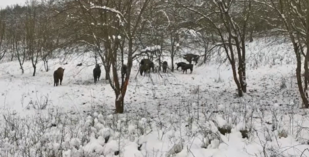 Zimbrii au ieșit la plimbare în pădurea Slivuț