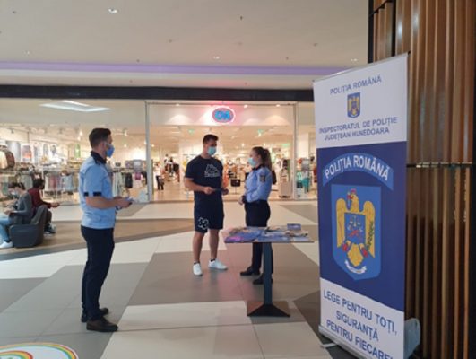 Activităţi de informare au fost organizate ieri şi în judeţul Hunedoara, în derularea acestora fiind implicaţi poliţişti din cadrul Compartimentului Analiza şi Prevenirea Criminalităţii, care s-au întâlnit cu cetăţenii în zone aglomerate din municipiul Deva (în incinta unui centru comercial) şi le-au oferit informaţii referitoare la factorii favorizanţi ai infracţiunilor de furt din locuinţă, modurile de operare cel mai frecvent utilizate de hoţi, precum şi principalele măsuri de siguranţă pentru protejarea locuinţei şi a bunurilor personale.