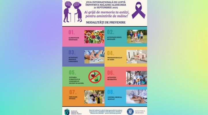 Cu ocazia Zilei Internaționale de Luptă împotriva Bolii Alzheimer, marcată anual pe data de 21 septembrie, Institutul Național de Sănătate Publică transmite un îndemn la conștientizare, prevenție și informare privind această afecțiune care afectează milioane de oameni la nivel mondial. Această zi a fost stabilită în anul 1994, sub umbrela federației internaționale, Alzheimer Disease International (ADI) și sub patronajul Organizației Mondiale a Sănătății, cu scopul de a concentra eforturile în vederea sensibilizării populaţiei generale cu privire la problematica demenţei de tip Alzheimer.
