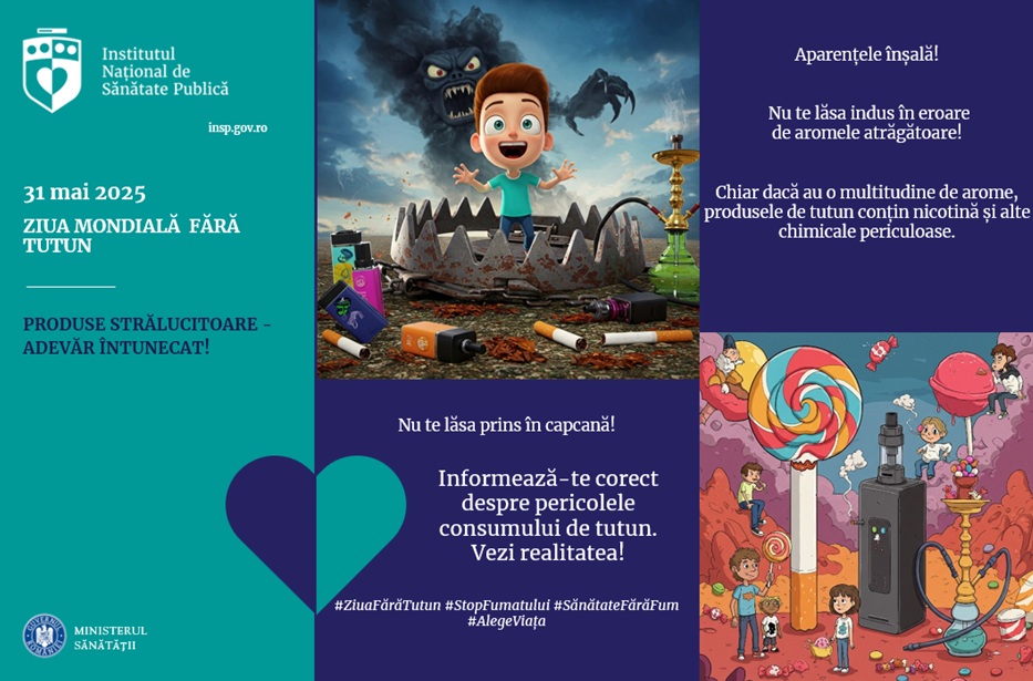 În contextul Zilei Mondiale Fără Fumat, 31 mai 2025, Institutul Național de Sănătate Publică reiterează că este nevoie de efortul comun al decidenților, organismelor de reglementare și organizațiilor de sănătate publică în direcția intensificării eforturilor pentru interzicerea aromelor în toate produsele din tutun și pentru reglementarea strictă a aditivilor utilizați.